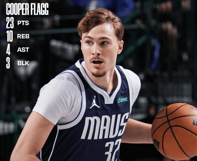 本场比赛,独行侠球员库珀-弗拉格出战39分钟,20投8中,其中三分球4投0中,罚球7投7中,得到23分10篮板4助攻1抢断3封盖。